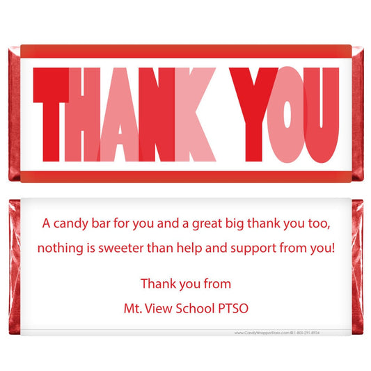Hershey's Chocolate Candy Bars and Wrappers for Teachers and Back to School celebrations. Want a sweet way to welcome students back to school? Or maybe parents and children want to show some appreciation to the teaching staff at school? Our personalized candy wrappers and Hershey's milk chocolate candy bars are a sweet way to celebrate students, teachers, admin and support staff.